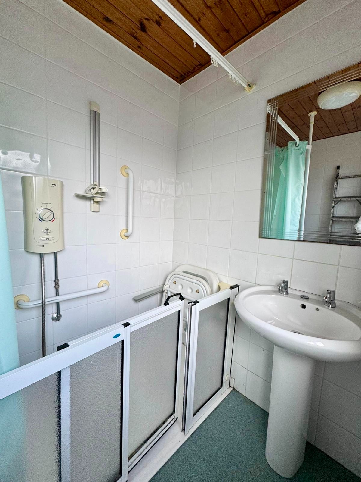 Suite comprising: Walk in shower with a Mira shower over and wash hand basin. UPVC decorative/double glazed window. Radiator.