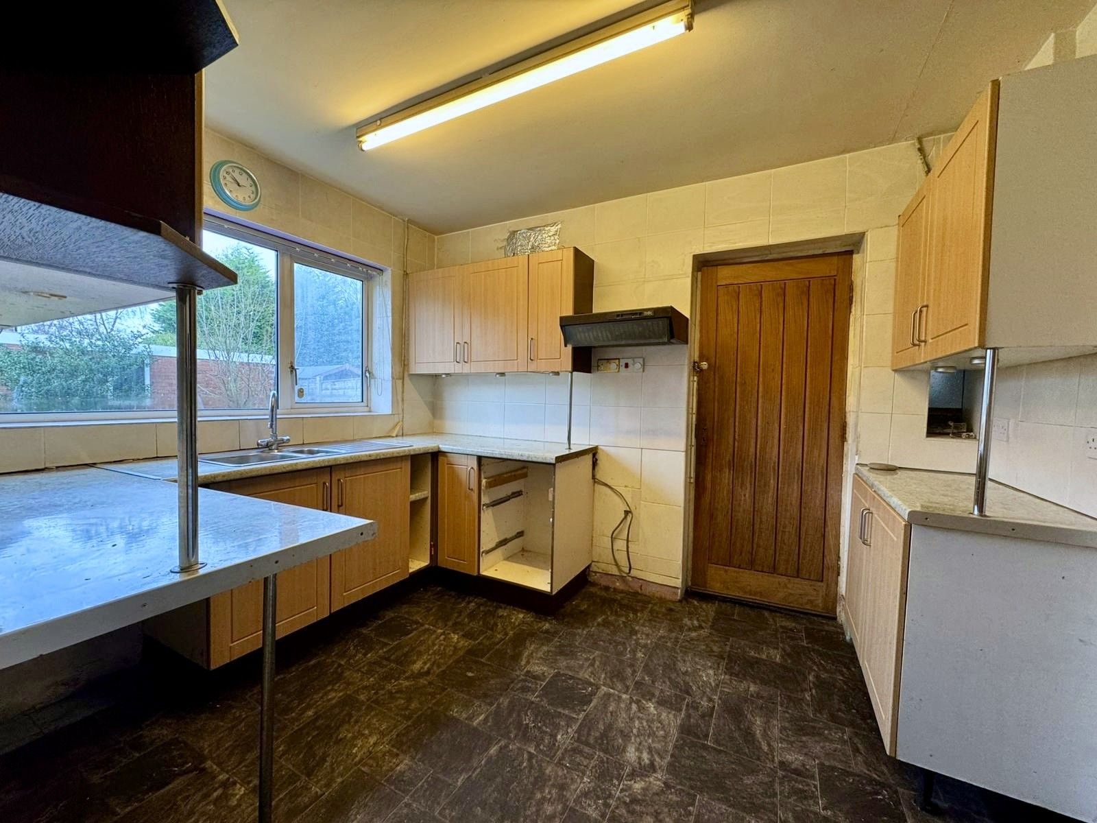 Fitted with a range of base and eye level units which are topped with complementary work surfaces. Ample space for various appliances and a cooker space with an extractor hood over. Tiled to the cooking and washing areas. One and a quarter bowl stainless steel sink which is set beneath a UPVC double glazed rear aspect window. Radiator. Under stairs storage cupboard.