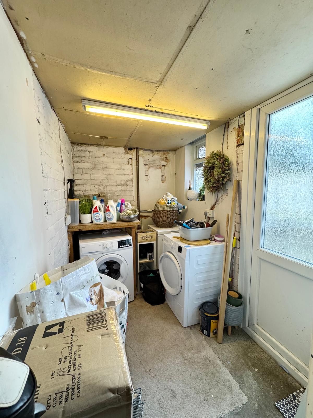 Ample space to accommodate various white goods. A UPVC part glazed side exit door. Note this space could be opened out to the outbuilding and a WC/cloaks could be installed.