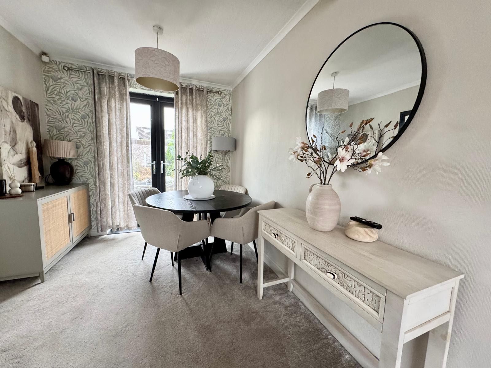 Apple space to accommodate a dining table and chairs. UPVC double opening/double glazed patio doors gives access to the rear garden.