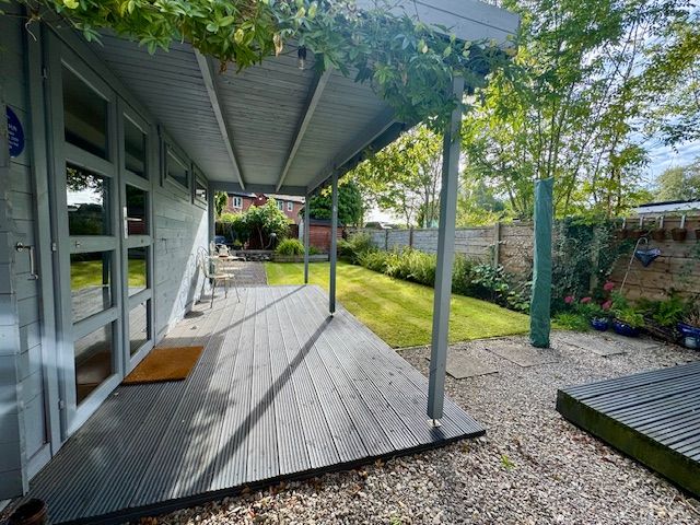Outside: The property occupies a good size plot which is a short walk into Gatley village.