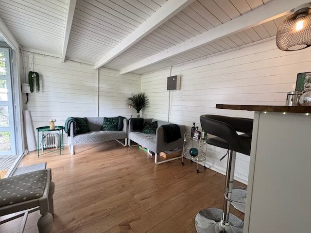 - Lounge/dining room/kitchen, family bathroom/garden bar/room
