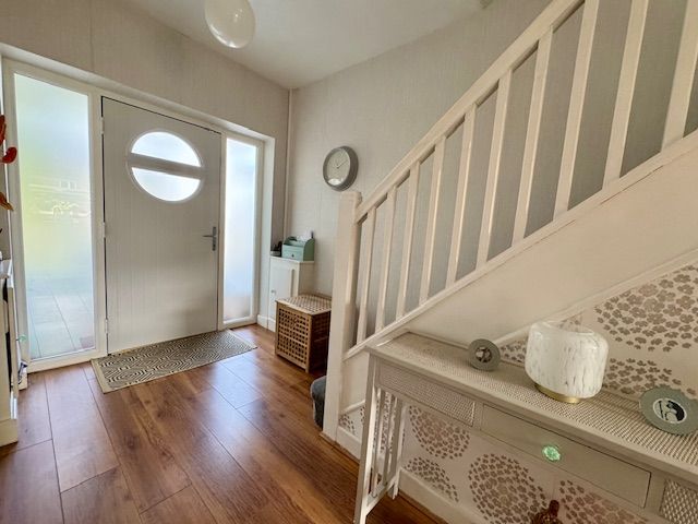 Reception Hall: A welcoming reception hall which is approached via a composite door with fixed glazed side section which provides excellent illumination to the hall. Radiator. Understairs storage cupboards. Stairs to the first floor.