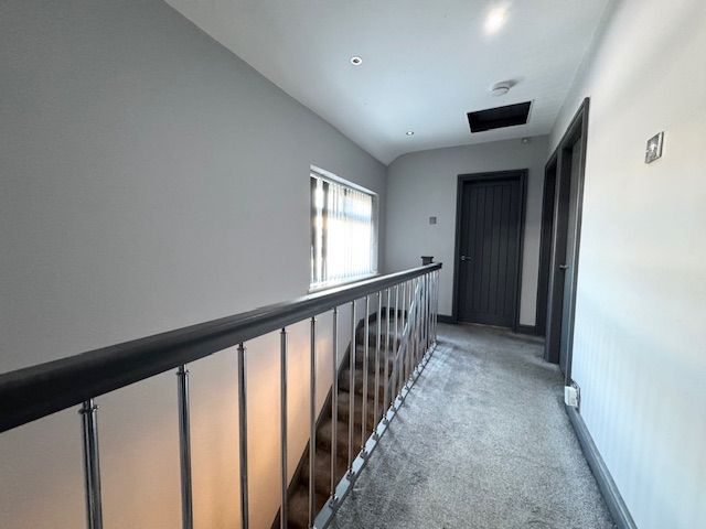 Hall: A welcoming reception area with metal spindled staircase to the first floor accommodation. Approached via a part glazed door. Modern upright radiator. Under stairs storage.