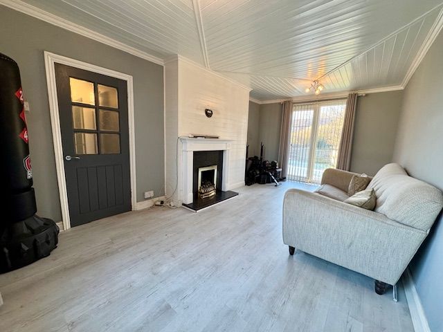 Lounge The focal point of this room is the feature fireplace. UPVC double glazed front aspect windows. Tilt and slide patio doors to the expansive decked area and rear garden beyond.