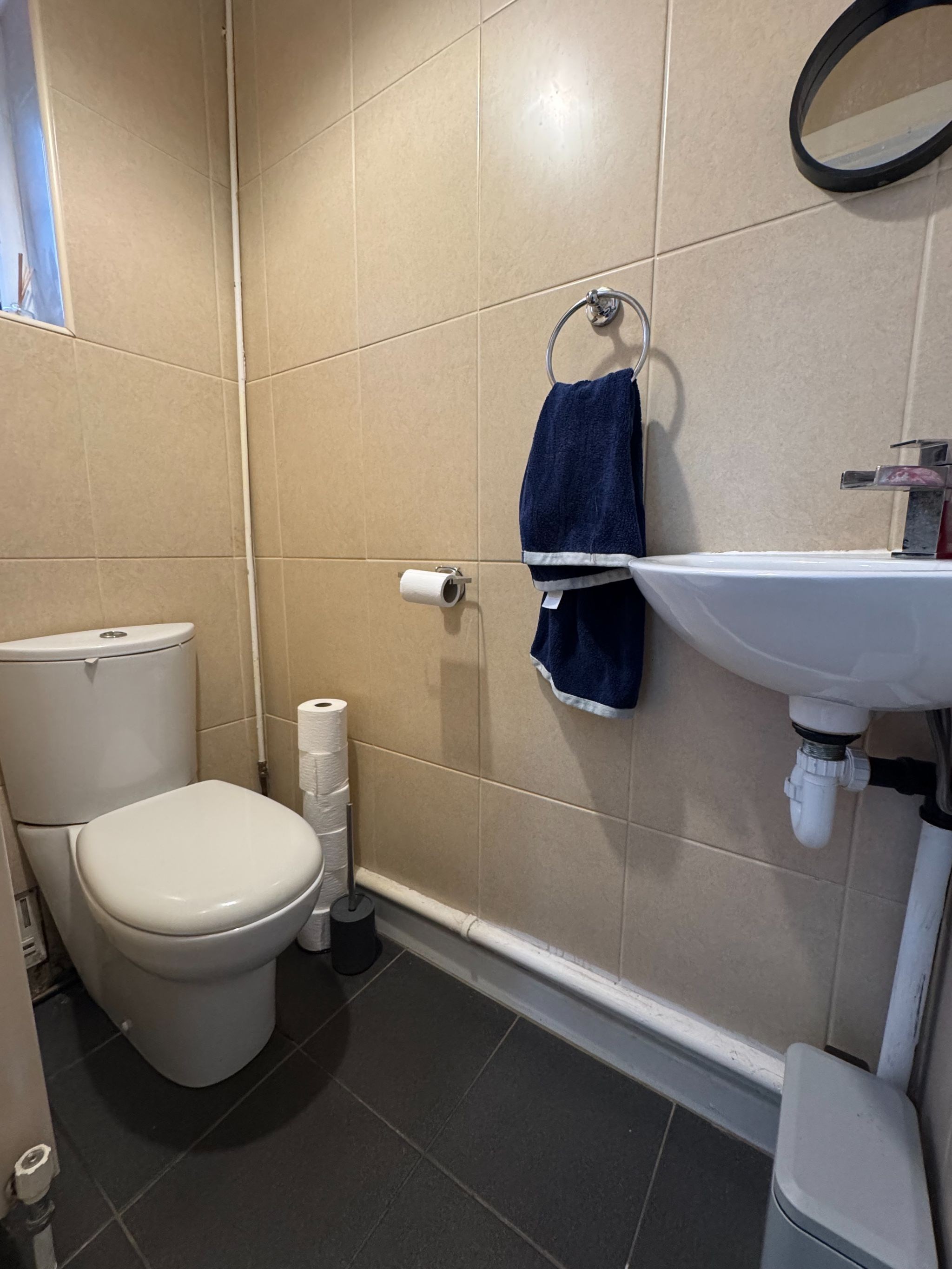 Downstairs WC: Low level WC and wash hand basin.