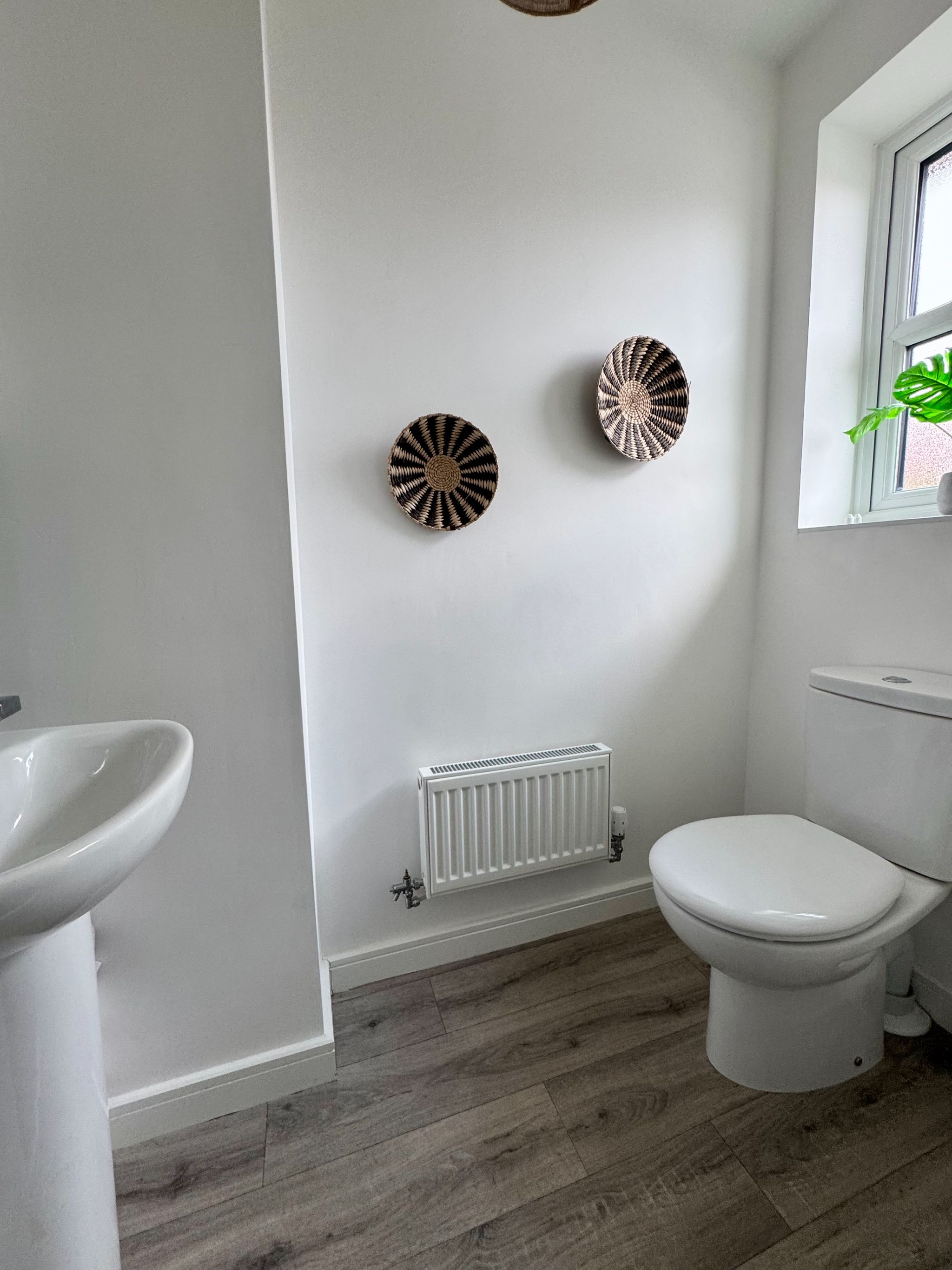 This suite comprises of a low level WC, hand wash basin with tiled splash back. Radiator. UPVC decorative double glazed window.